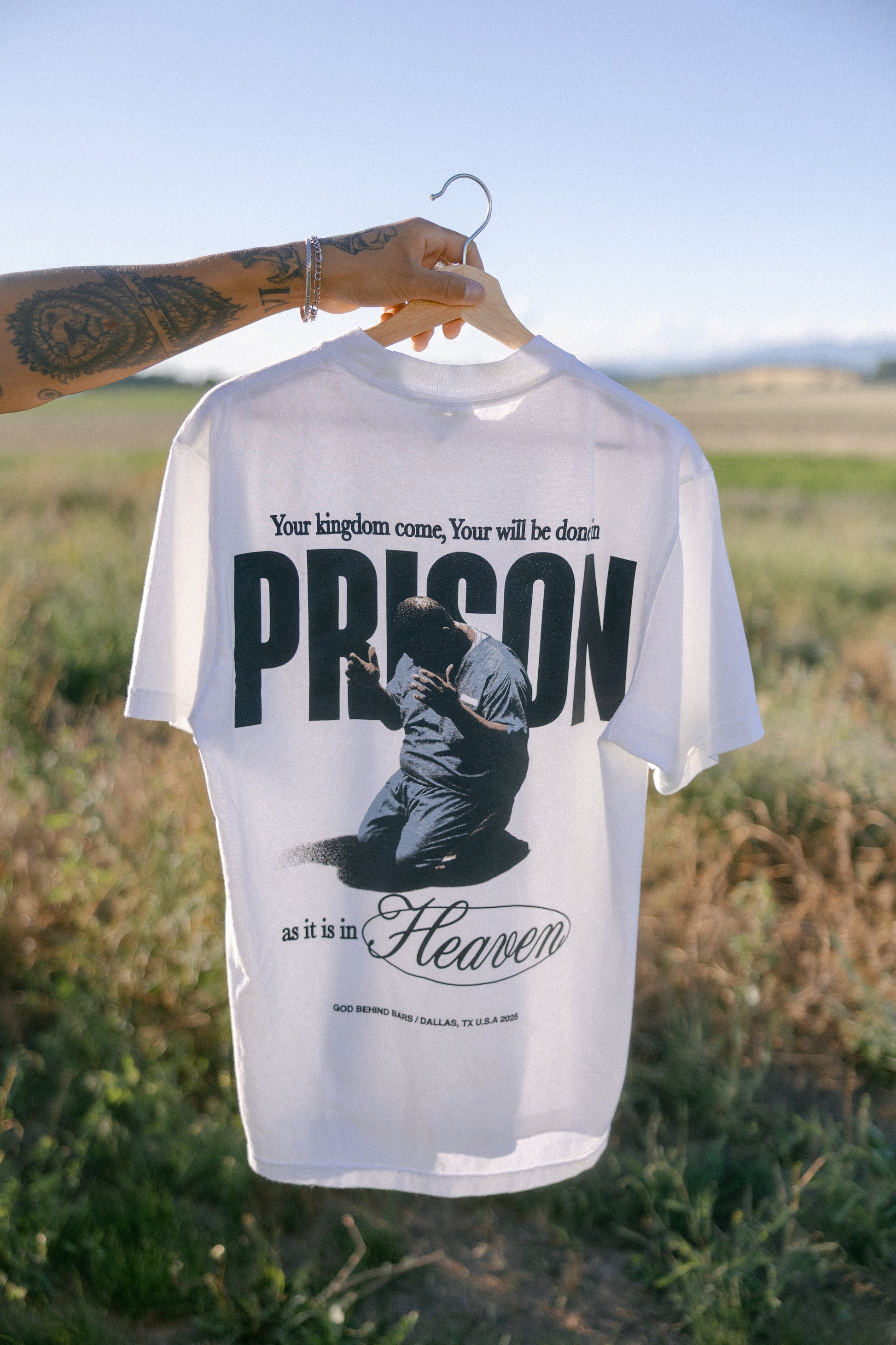 Inspired by the words of Jesus, “Your kingdom come, Your will be done, on earth as it is in heaven,” [Matthew 6:10] this shirt declares that even in the darkest places, His Kingdom come. The bold design is a declaration that heaven’s hope and redemption belong everywhere - even behind prison walls.